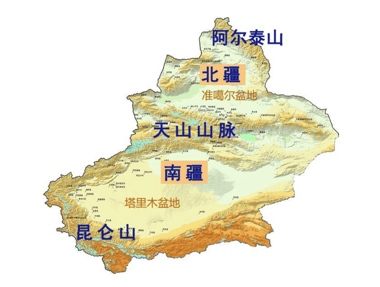 中学地理课本上,介绍的“疆”字是“三山夹两盆”,顺序分别是阿尔泰山、准格尔盆地、天山、塔里木盆地、昆仑山,上部分就属于北疆。北疆的面积虽然比南疆要小,但实际也是非常大的地方,景点与景点、城市与城市之间往往相距几百公里。