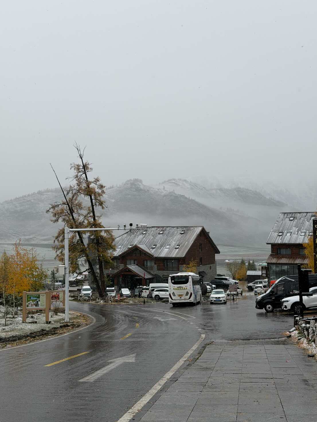 加上这几天天气不太好,不仅大雾环山,喀纳斯下大雪、进出曾被中断。所以最后我们没有去喀纳斯景区,选择等封路结束后,马上从贾登峪自驾到布尔津县,最后确实有很多游客被困在这边两三天无法出去。